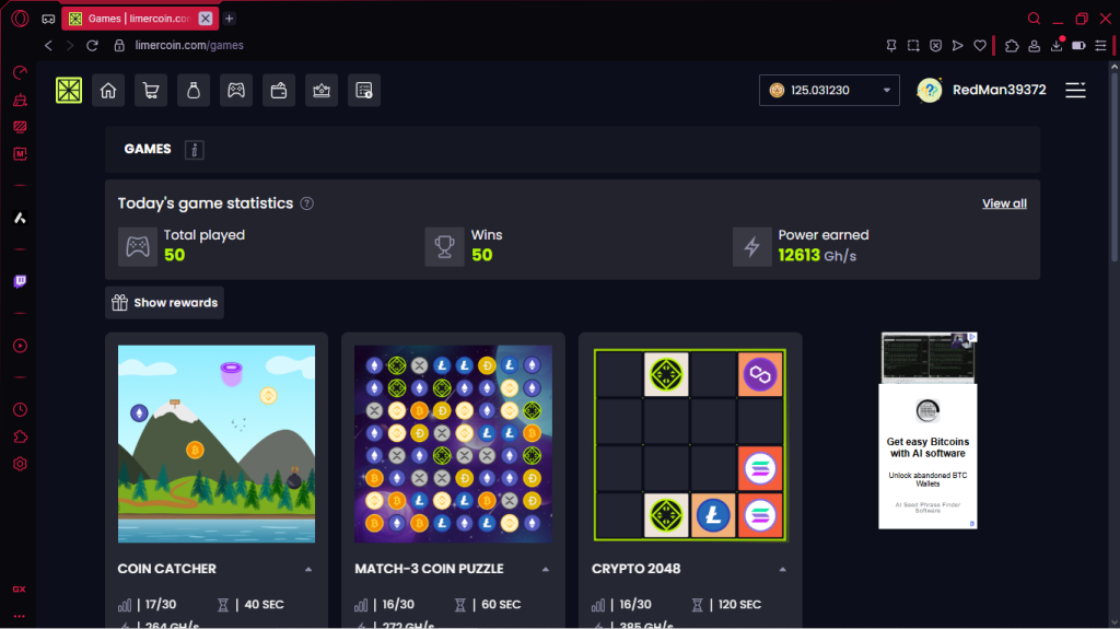 Play Games – By playing games, you can collect a solid amount of mining power. Keep in mind that this power only lasts for 24 hours, but you’ll also earn a bit of extra energy along the way.