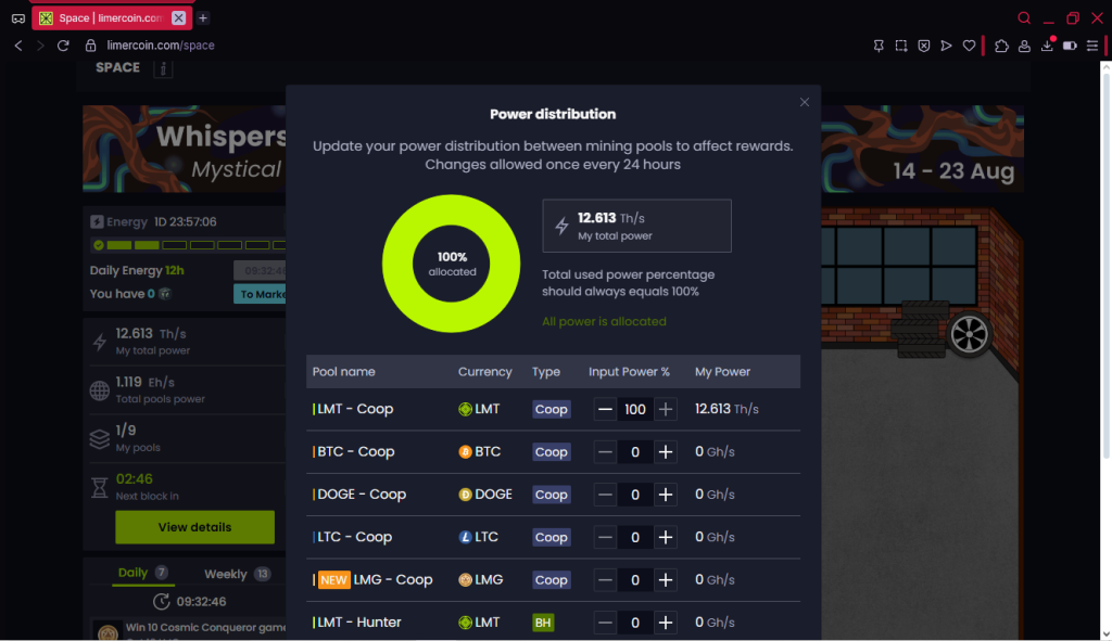 - Hunter Pool – In this mode, one lucky miner takes the entire reward. However, your chance of winning increases with higher mining power, so the more power you have, the better your odds.